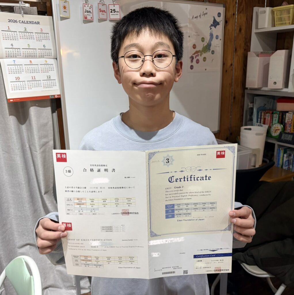 中1の秋、英検3級に挑戦。試験1か月前からは、そらうみKIDZの英検対策を受講しました。結果は、合格基準1456点に対して1622点と高得点で合格。